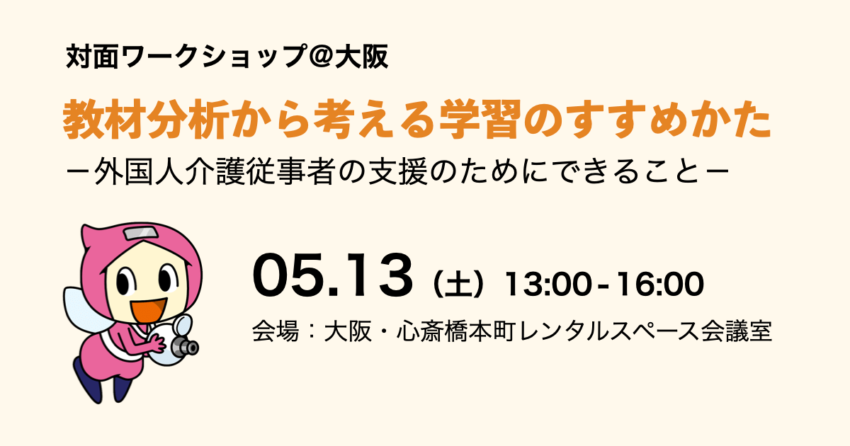 このワークショップで、自分の現場にあった学習支援方法について一緒に考えてみませんか?対面ワークショップならではの活動やディスカッションを参加者のみなさまとできることを楽しみにしています!